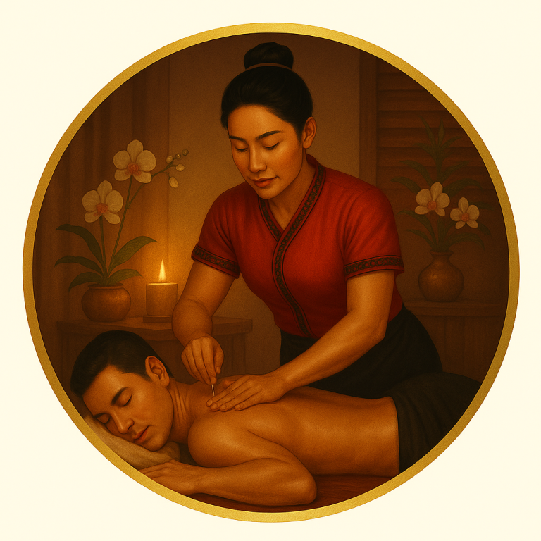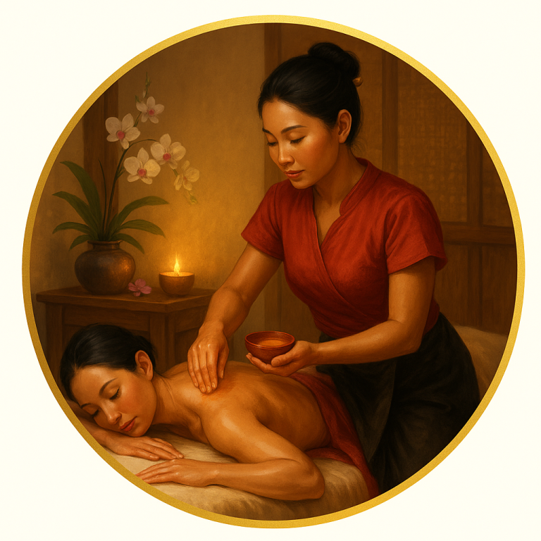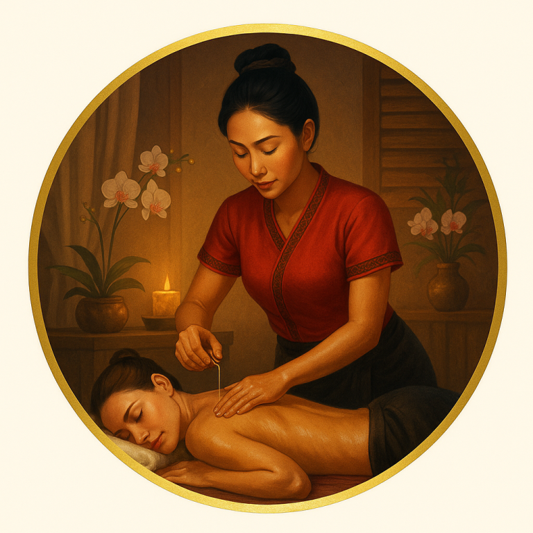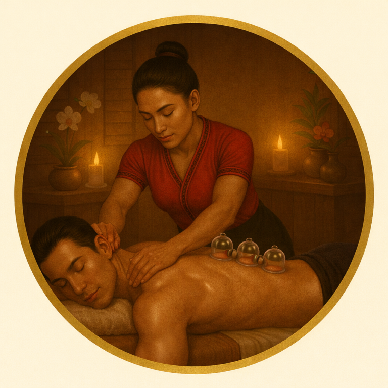 Ce soin combine le massage thaïlandais à l’huile et la cupping therapy (ventouses) pour une action ciblée en profondeur. L’huile détend les muscles tandis que les ventouses stimulent la circulation et libèrent les tensions profondes. Idéal en cas de fatigue, de raideurs ou de douleurs localisées, il procure un soulagement durable et une sensation de légèreté. Réalisé par nos praticiennes diplômées venues de Thaïlande.