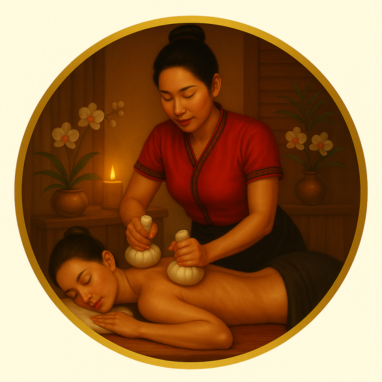 Ce massage traditionnel thaïlandais utilise des pochons de coton garnis d’herbes médicinales chauffées à la vapeur. La chaleur et les senteurs aromatiques se diffusent sur la peau, apaisent les tensions musculaires et stimulent la circulation. Véritable rituel de bien-être, il procure une profonde détente, soulage les douleurs et enveloppe le corps d’un parfum naturel aux vertus revitalisantes.